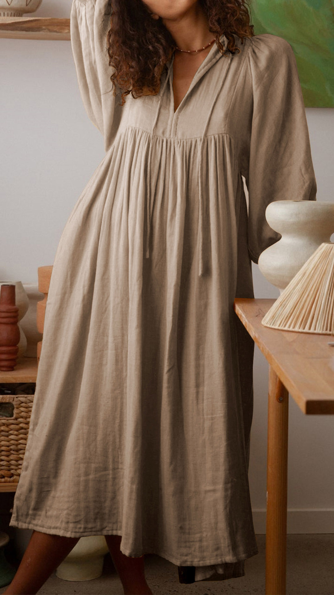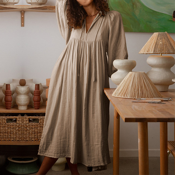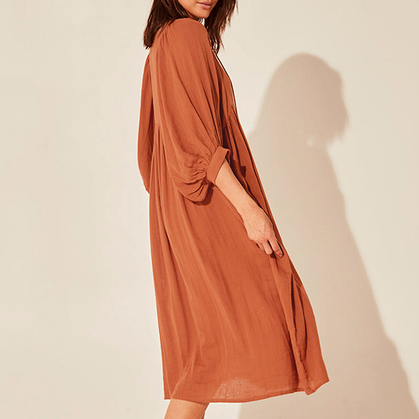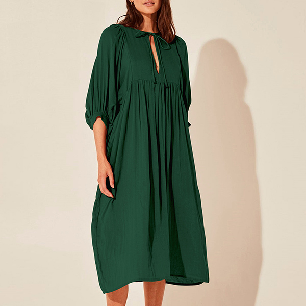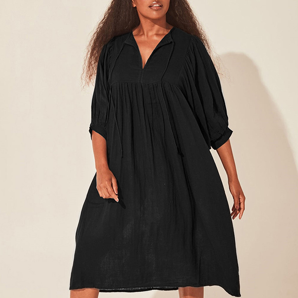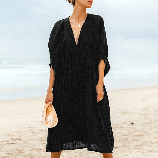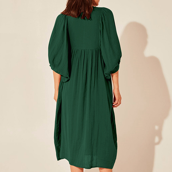 Casual Solid Color V-neck Loose Dress