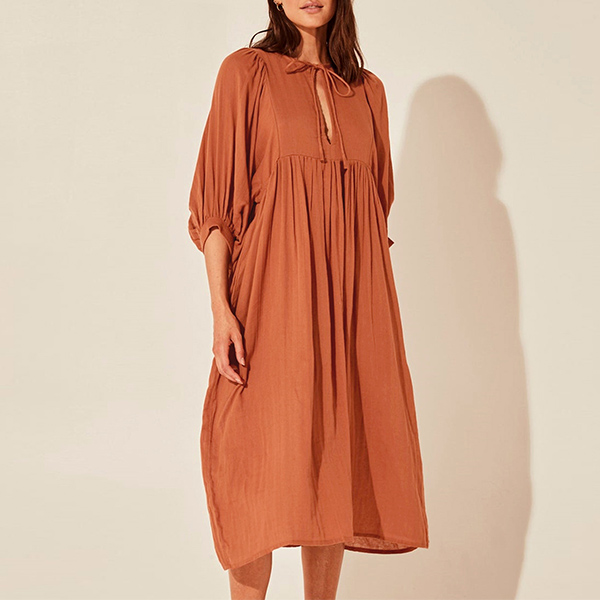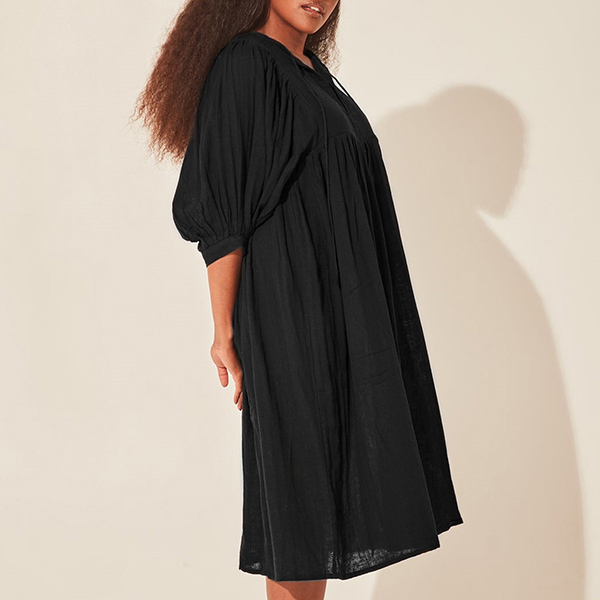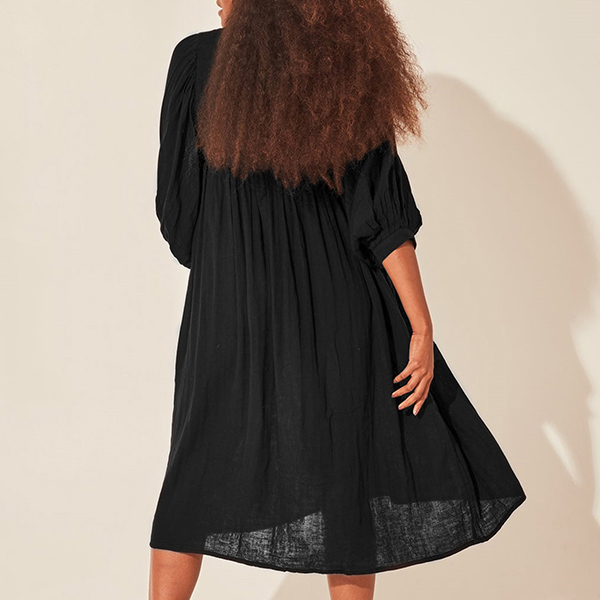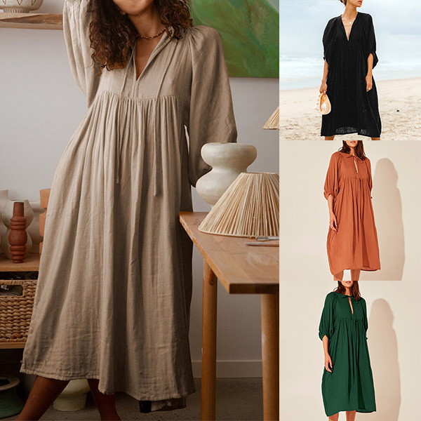 This dress is sure to become a wardrobe staple. It features a comfortable, loose fit with a V-neckline and short sleeves. The solid color makes it easy to pair with any accessories and shoes. The lightweight fabric is breathable and comfortable, making it ideal for everyday wear.