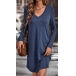 Casual Solid Color V-neck Patch Pockets Long Sleeve Dress