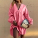 Casual Solid Color V-neck Puff Long Sleeve Cotton and Linen Dress