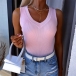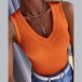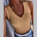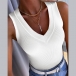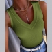 Casual Solid Color V-neck Ribbed Sleeveless Shirt