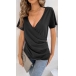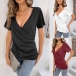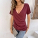Casual Solid Color V-neck Ruched Buttoned Shirt