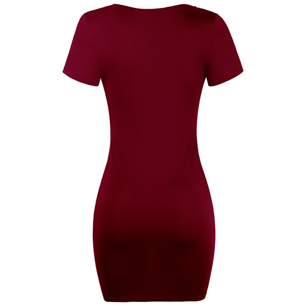 Casual Solid Color V-neck Short Sleeve Bodycon Dress