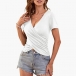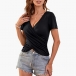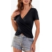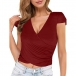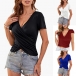 Casual Solid Color V-neck Short Sleeve Cross Ruched Crop Top