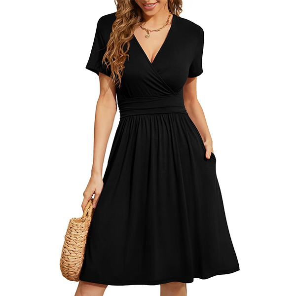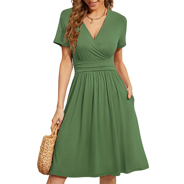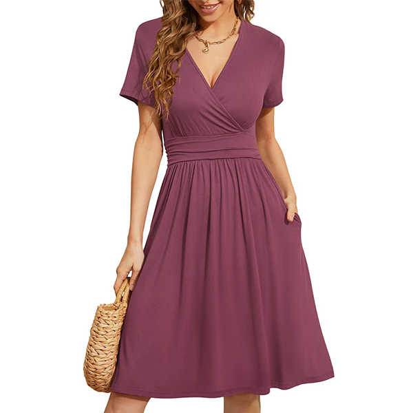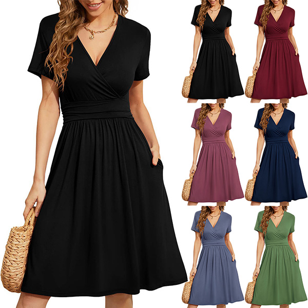 This casual dress is perfect for the modern woman on-the-go. It is delicately designed with a V-neckline, short sleeves, and side pockets making it easy to carry your essentials around while keeping your hands free. Wanna have one?