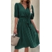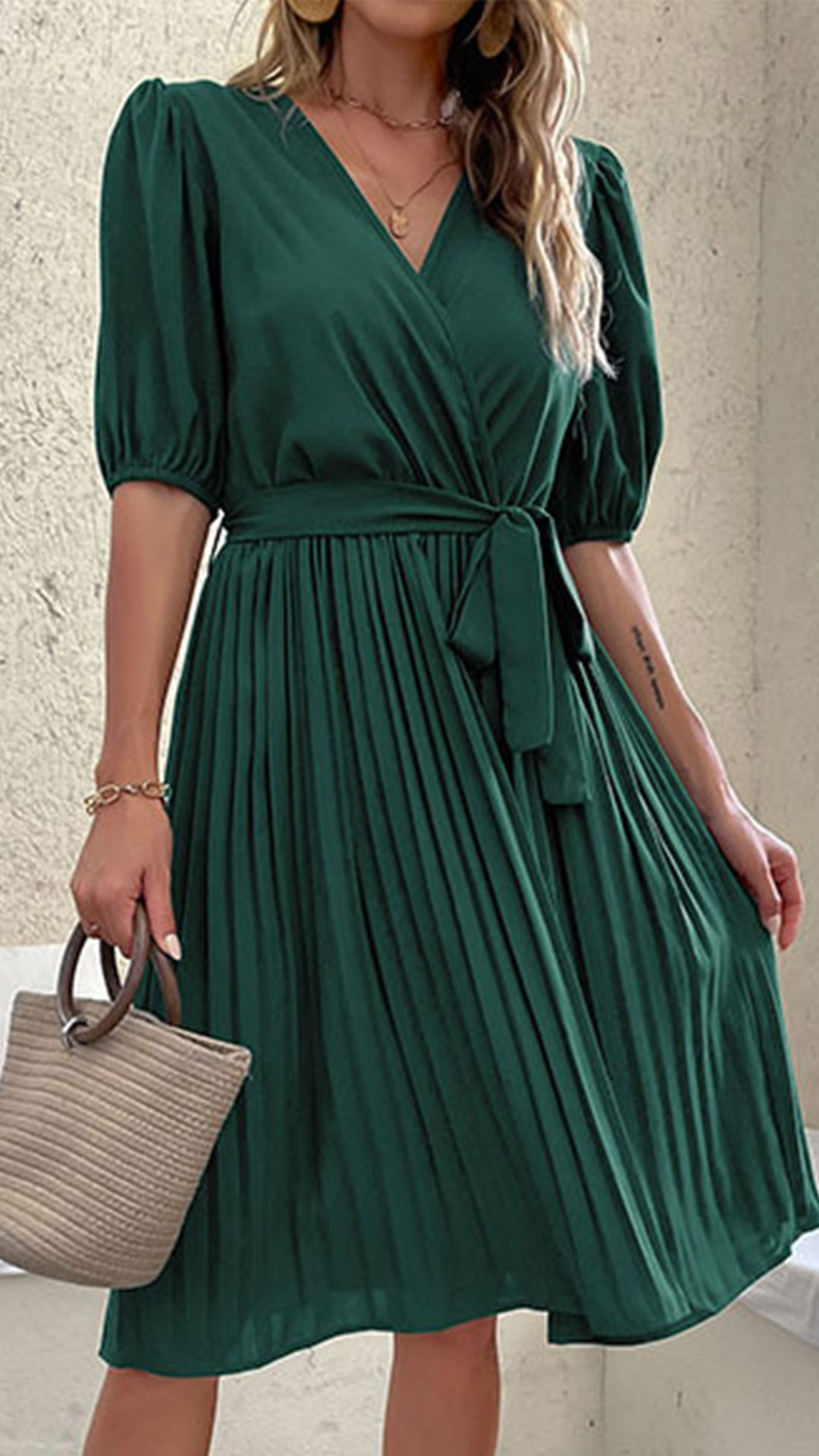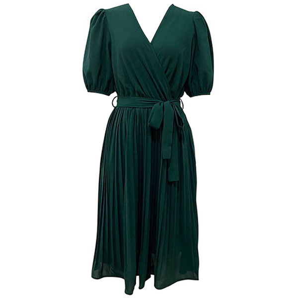 This dress is a versatile and comfortable addition to your casual wardrobe. It features a classic and timeless design, with a solid color that makes it easy to pair with your favorite accessories. The V-neckline and pleated detail add a touch of elegance to the overall look, while the self-tie belt provides a customizable and flattering fit. Wanna have one?