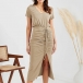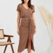 Casual Solid Color V-neck Short Sleeve Ruched Drawstring Slit Bodycon Dress