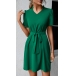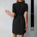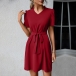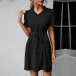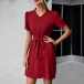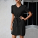 Casual Solid Color V-neck Short Sleeve Self-tie Mini Dress