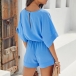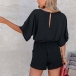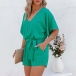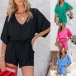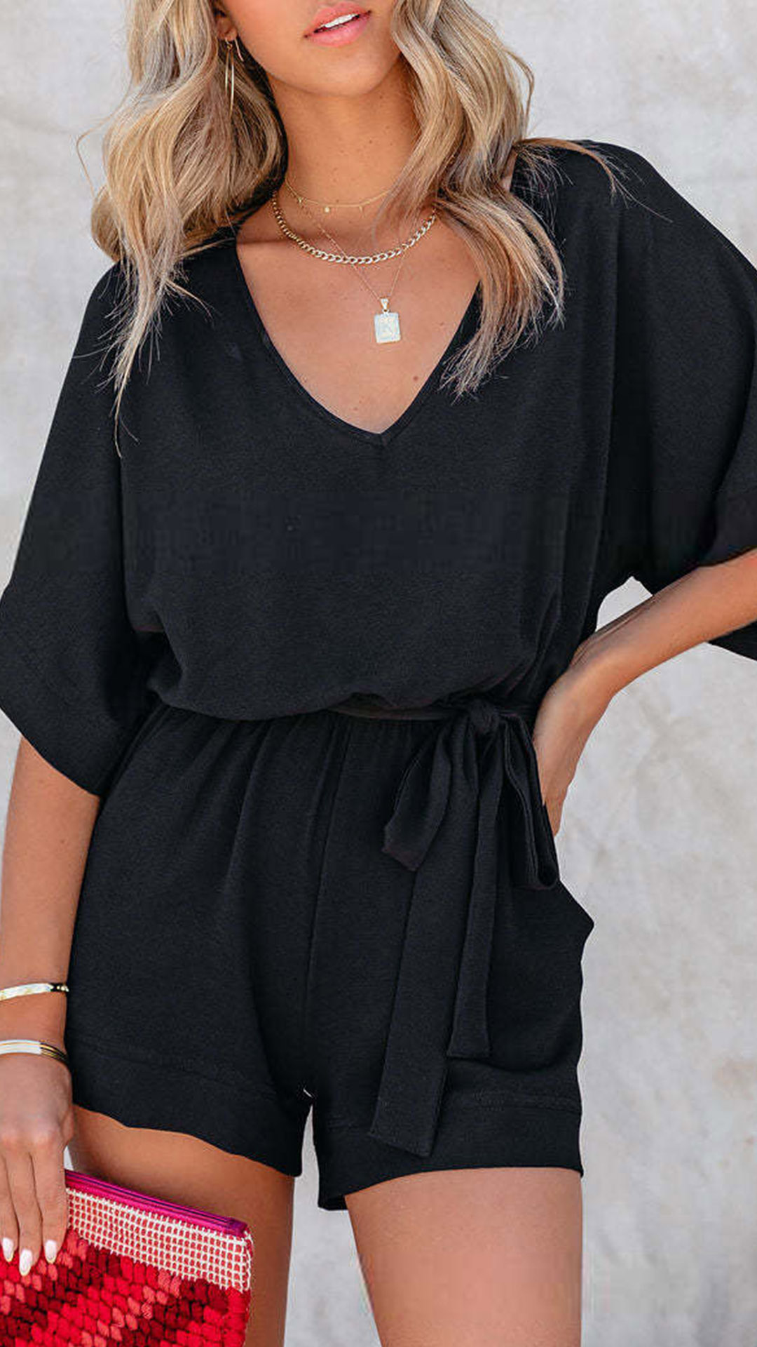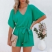 Casual Solid Color V-neck Short Sleeve Self-tie Romper