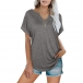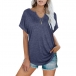 Casual Solid Color V-neck Short Sleeve Shirt