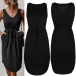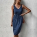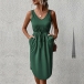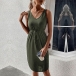 Casual Solid Color V-neck Sleeveless Drawstring Dress