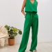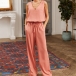 Casual Solid Color V-neck Sleeveless Drawstring Wide-leg Jumpsuit