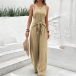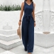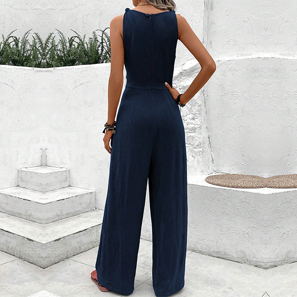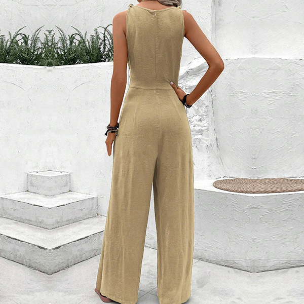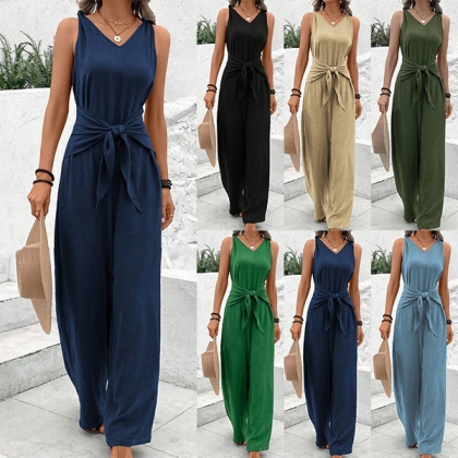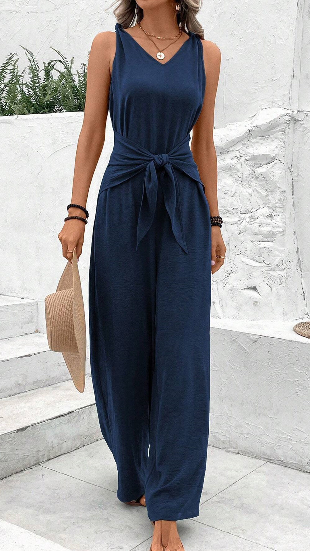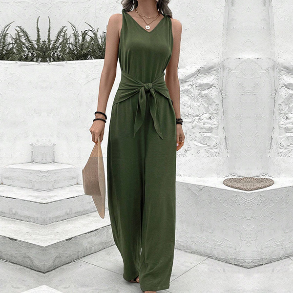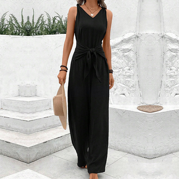 Casual Solid Color V-neck Sleeveless Self-tie Jumpsuit