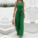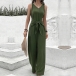 This is a trendy and comfortable jumpsuit that exudes modern charm and effortless sophistication. Crafted with a sleeveless silhouette and a self-tie waist, this jumpsuit provides a relaxed and flattering fit that can be dressed up or down with ease. Perfect for a day out with friends, a casual evening event, or a weekend getaway.