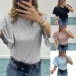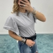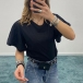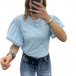 A basic shirt for this summer. Solid color style, finished with short trumpet sleeve and V-neck design, this piece definity can keep you comfy as well as offer you different matching styles.