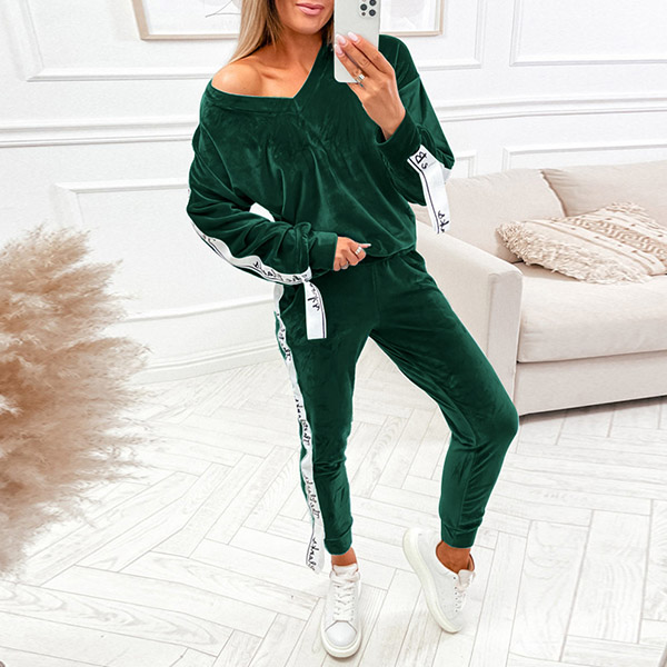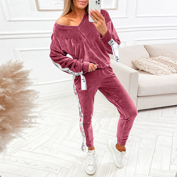 Casual Sport Set Consist of V-neck Shirt and Sweatpants