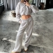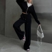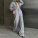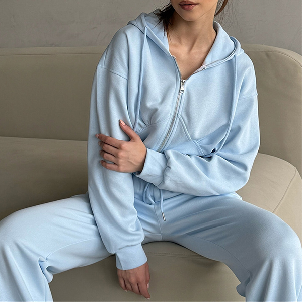 This versatile set is perfect for lounging, running errands, or hitting the gym in style. The crop hooded jacket adds a trendy and athletic touch, while the drawstring sweatpants offer comfort and ease of movement. Pair it with sneakers for a laid-back and sporty look.
