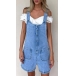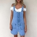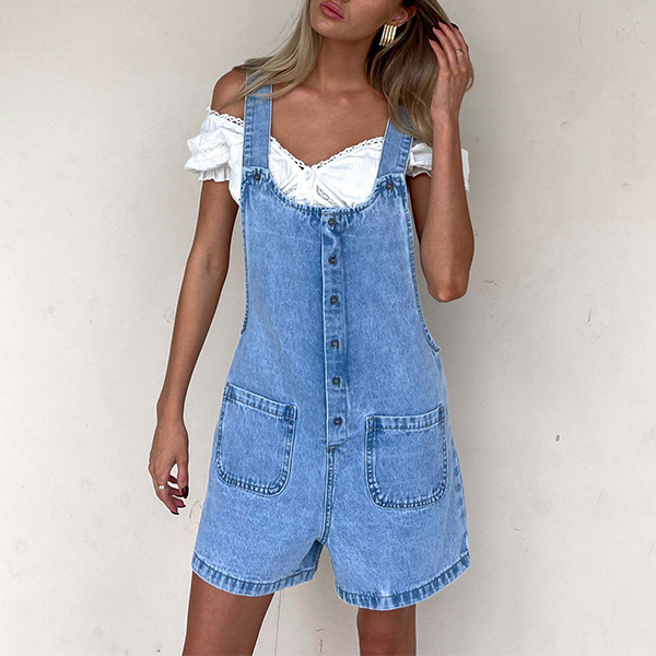 Casual Square Neck Front Button Patch Pockets Old-washed Denim Suspender Romper