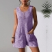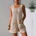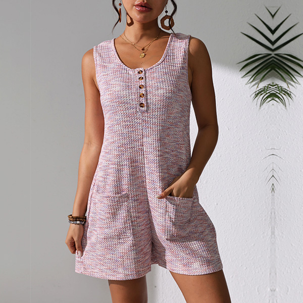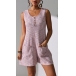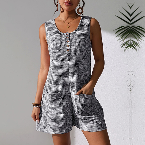 Casual Square Neck Front Button Sleeveless Patch Pockets Romper