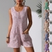 This is a versatile and chic romper that exudes a laid-back and trendy vibe. The square neck with front button closure design offers a modern and flattering silhouette, perfect for showcasing your neckline and adding a touch of sophistication to your outfit. The patch pockets add a casual and utilitarian touch to the romper, offering a practical and stylish detail. Perfect for a day at the park, a picnic, or a casual outing, this romper is designed to make you feel comfortable and fashionable.