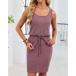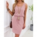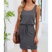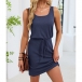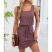 Casual Square Neck Sleeveless Drawstring Waist Bodycon Dress