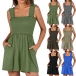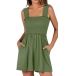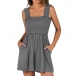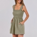 Casual Square Neck Smocked Bodice Side Pockets Romper