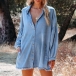 This denim mini dress features a stand collar, long sleeves, frayed hemline and losse slihoutte, creating a casual and stylish look. You could pair it with sneakers or ankle boots for a casual and trendy look.