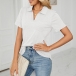 Casual Stand Collar V-neck Short Sleeve Chest Patch Pockets Shirts