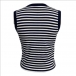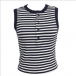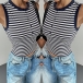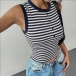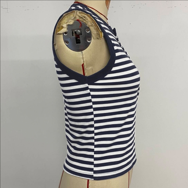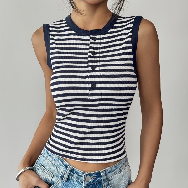 Casual Stripe Printed Crew Neck Front Button Sleeveless Tank Top
