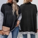 This loose shirt features a stripe print along the sleeve and the hemline for a contrasting color effect. This type of shirt is typically worn in casual settings and provides a laid-back and effortless look.