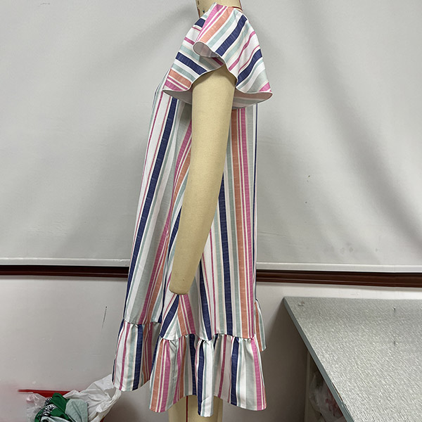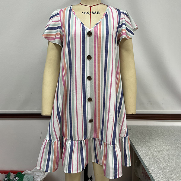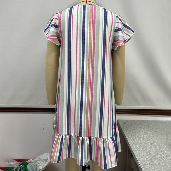 Casual Stripe Printed Short Sleeve Ruffle Buttoned Mini Dress