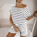 Casual Stripe Printed Two-piece Set Consist of Backless Shirt and Shorts