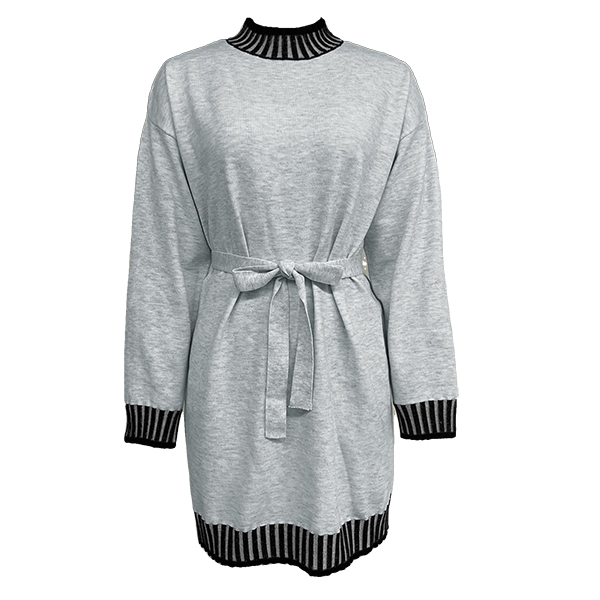 Casual Striped Color Block Mock Turtleneck Sweater Dress