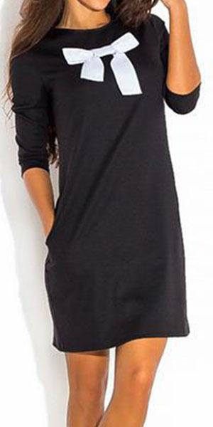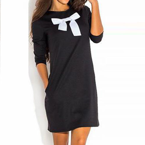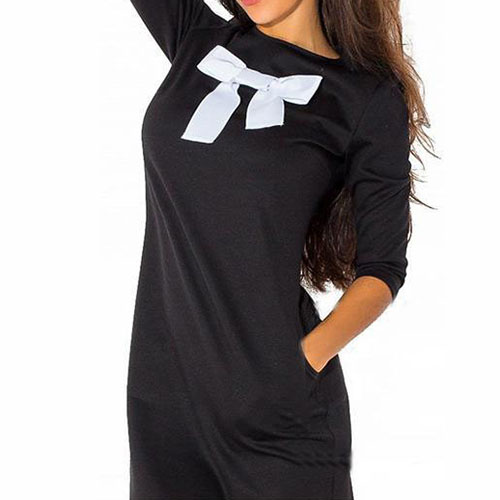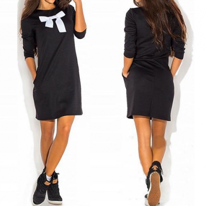 Front bowknot design, chic and eye-catching. Boasting a black hue, with round neck, long sleeve and relaxed silhouette