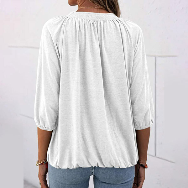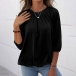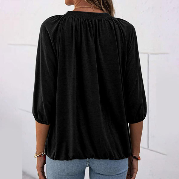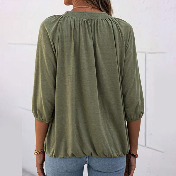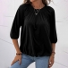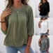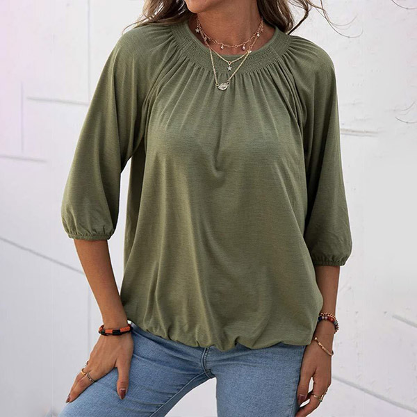 Casual Style 3/4 Sleeve Round Neck Solid Color Loose Top