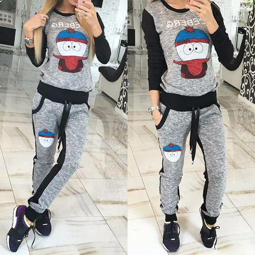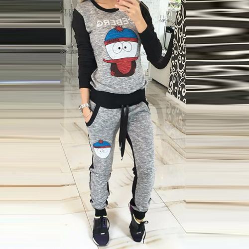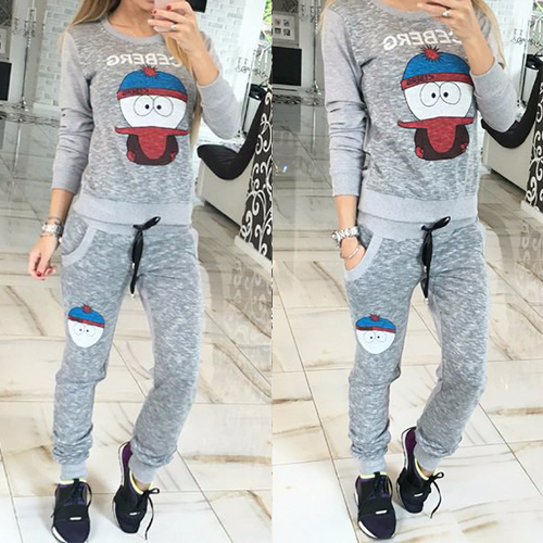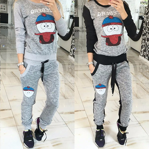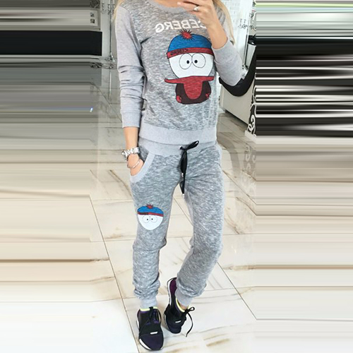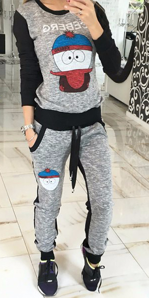 Boasting a cute cartoon pattern, with round neck, long sleeve and drawstring waist design, this sports set is a perfect choice for your sports.