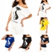 Casual Style Cat Printed Oblique Shoulder Short Sleeve Relaxed T-shirt