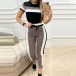Don't know hot to match? Then this two-piece set can be your perfect solution. The contrast color element and plaid printed design will make it look more stylish and attractive. Including a short sleeve round neck t-shirt and a high waist pants,this two-piece set not only can give you a comfortable day,but also can maintain your style and personality.