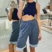 Casual Style Contrast Color Elastic Waist Knee-length Shorts