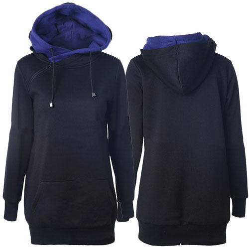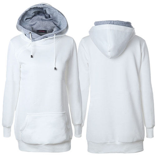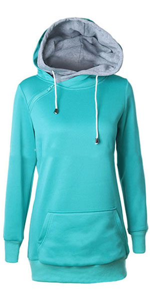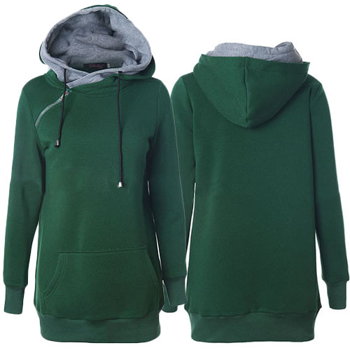 Hooded design decorated with oblique zipper can add some chic elements into your style.