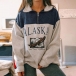 When it comes to a casual,relaxed yet stylish autumn look,this sweatshirt would be your perfect choice. The contrast color element and letters printed details will make this piece look more stylish and attractive. Finished with long sleeve,lapel and a loose silhouette,this sweatshirt can keep the comfy as well as maintain a laid-back style.