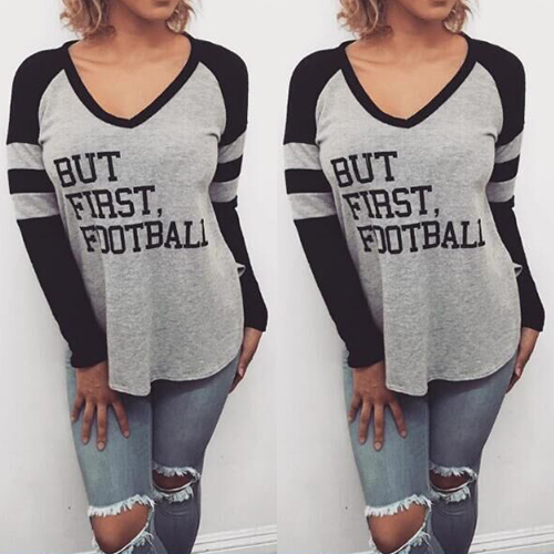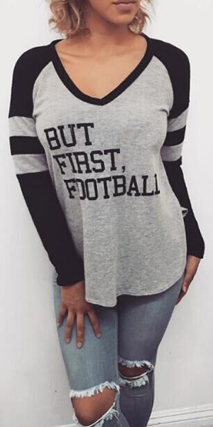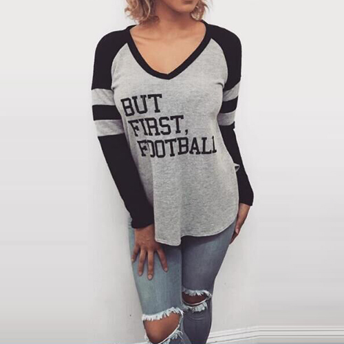 with v-neck, long sleeve and letters printed design, casual and style. Crafted from soft and flowy material,