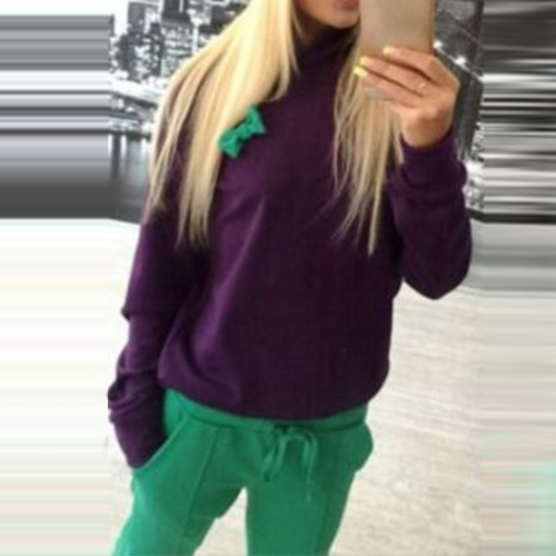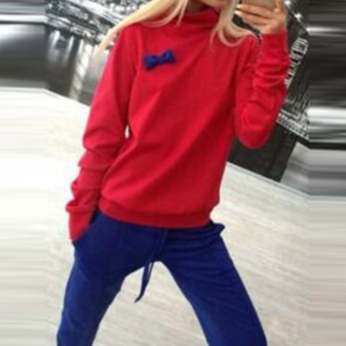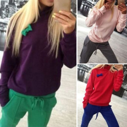 including a long sleeve tops and a solid-coloured pants, the small bowknot adds some chic and