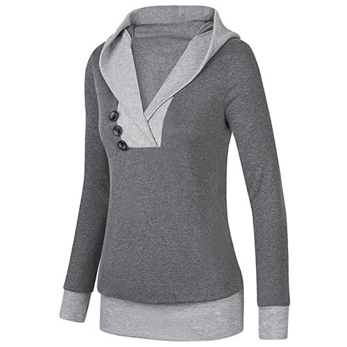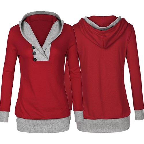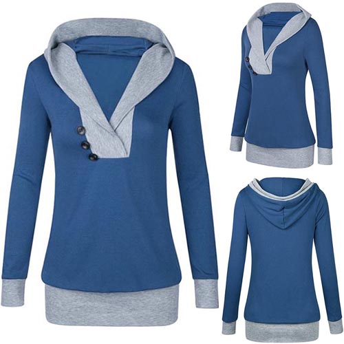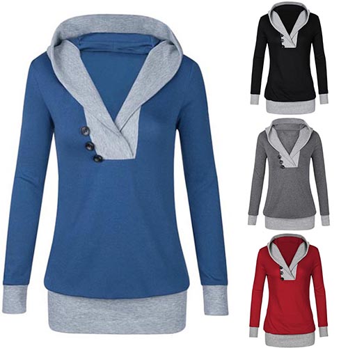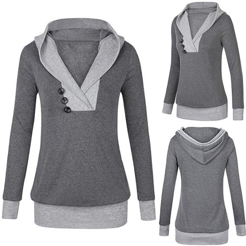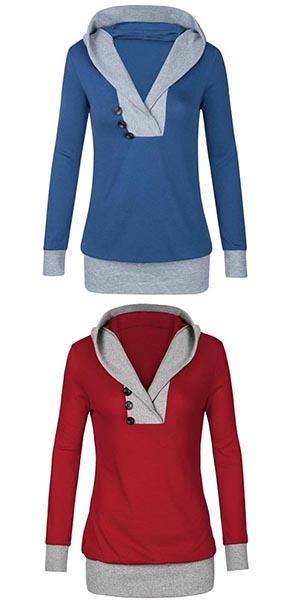 for your autumn outing. Contrast color style, accompanied with hooded, v-neck and long sleeve design,