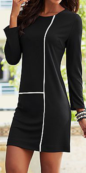round neck and long sleeve design, contrast color style and slim-fitting silhouette, this dress