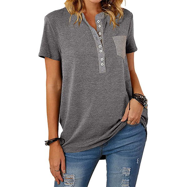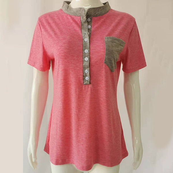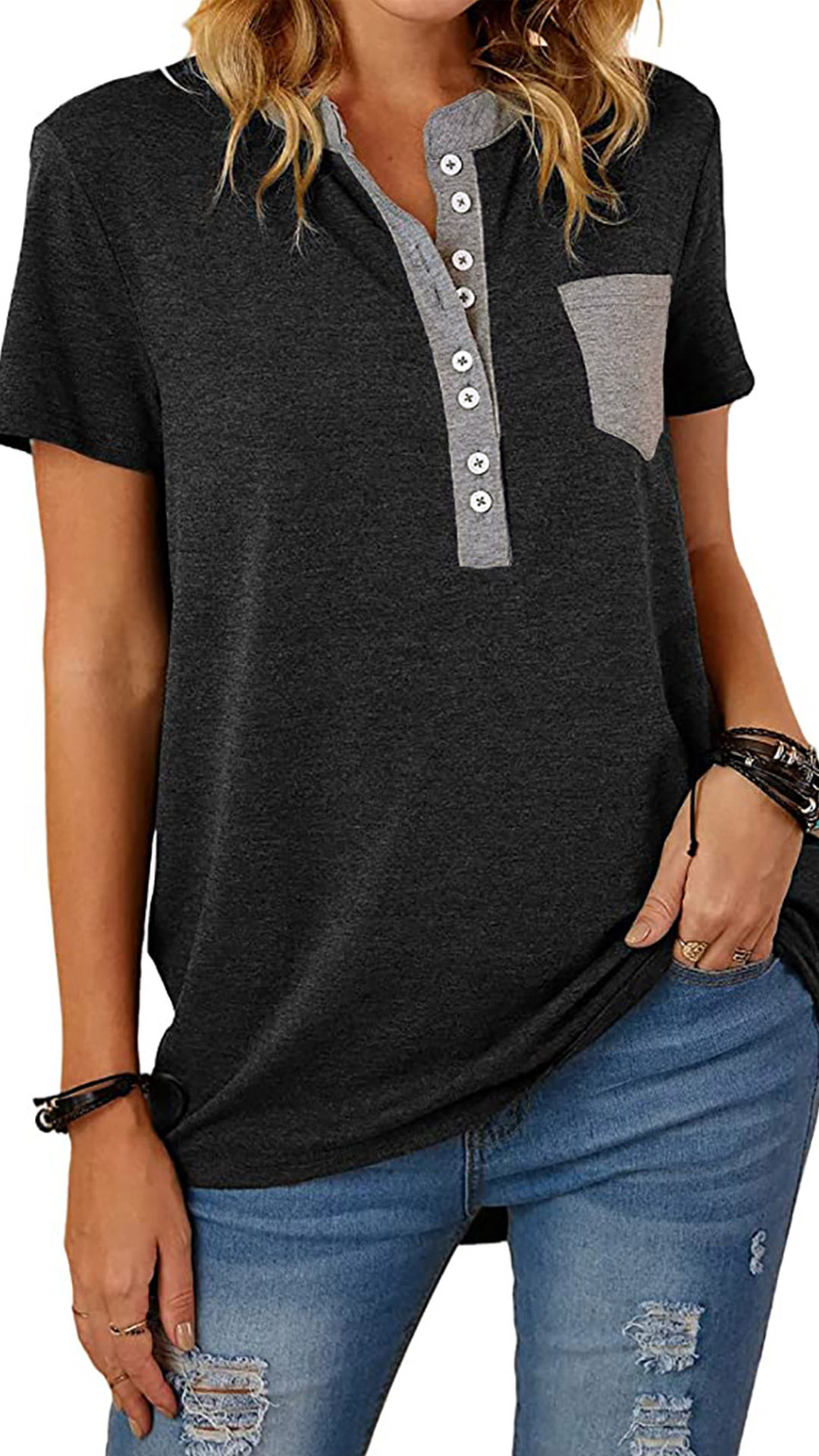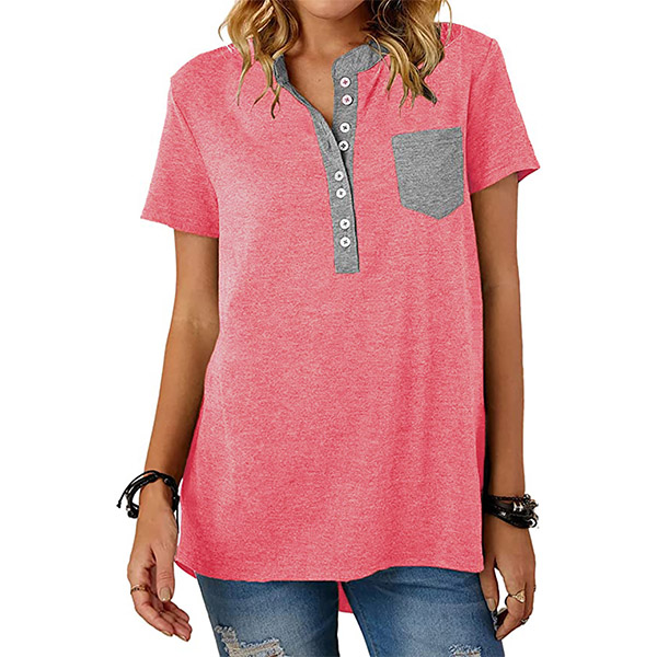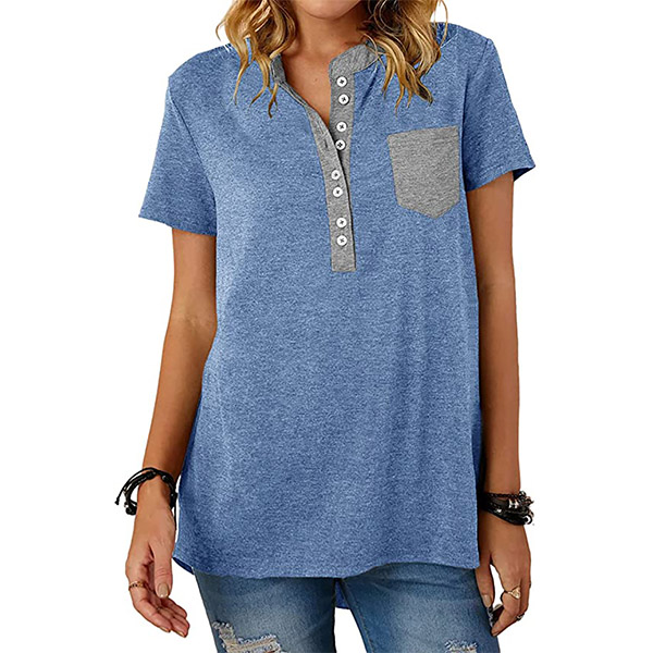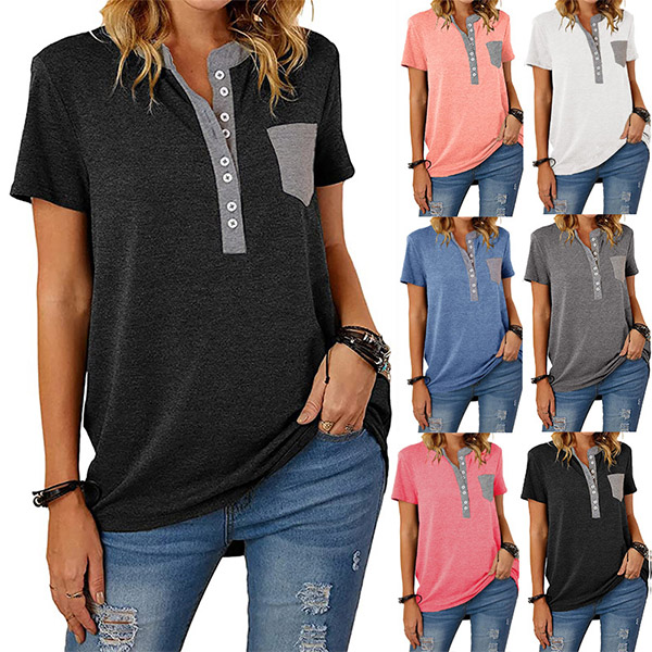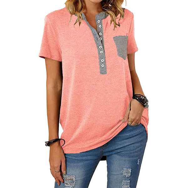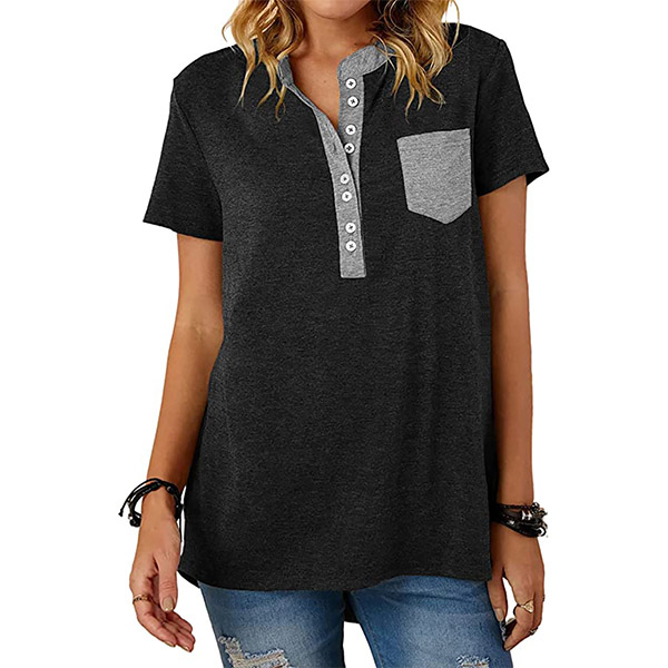 Crafted from soft and breathable fabric,with short sleeve and a loose silhouette,this t-shirt can give you an all-day comfort. Contrast color element design will enrich the design style. And the button details at the neckline part will further enhance its entire charm. This piece is the just thing you need on your casual days.