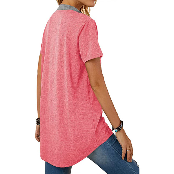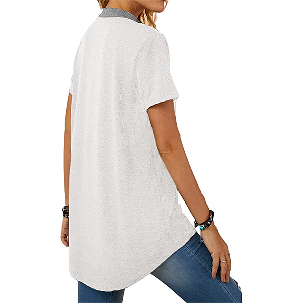 Casual Style Contrast Color Short Sleeve V-neck Loose T-shirt