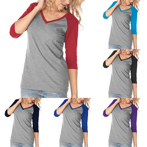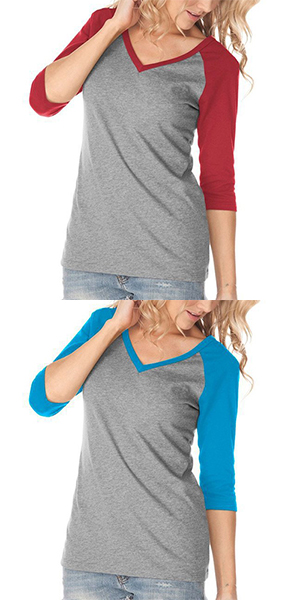Designed for your off-duty days, this T-shirt features contrast color, v-neck and 3/4 sleeve design,