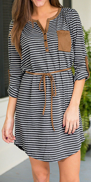 Nothing can do better than this dress to bring you a classic and fashion appearance. It boasts striped prints,