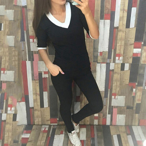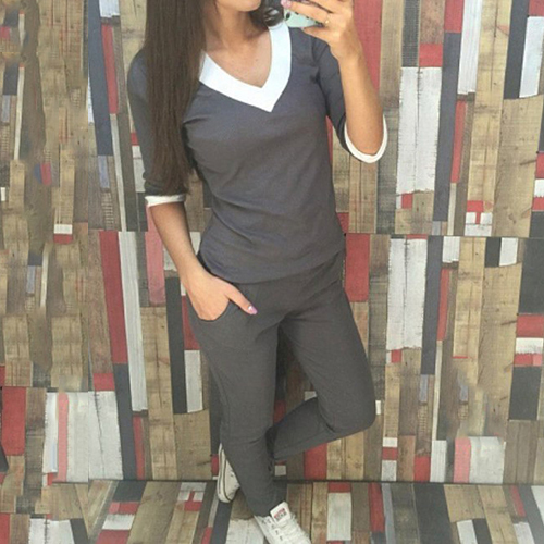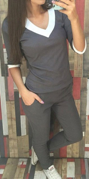 This sports suit can perfect show your fashion taste and casual style. With v-neck construction,